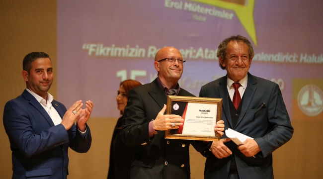 Ünlü yazar, araştırmacı ve programcı Dr. Mütercimler, Hikmet Şimşek Sanat Merkezi’ni dolduran yüzlerce İzmirliye, Gazi Mustafa Kemal Atatürk’ü bilinmeyen yönleriyle anlattı. Büyük Önderin görüş ve düşüncelerini, günümüzden örneklerle kıyaslayarak değerlendiren Dr. Mütercimler, Atatürk’e sevgi ve bağlılığın, onun değerlerine sahip çıkmakla mümkün olacağını belirtti. “Fikrimizin rehberi Atatürk’tür ve ne mutlu ki dünyanın gördüğü en seçkin komutan, devrimci ve halk lideri, bizim Başöğretmenimizdir” diyen Dr. Mütercimler, tarihte çok az liderin böyle bir konuma ulaştığını ve unutulmazlığı yakalayabildiğini anlattı.