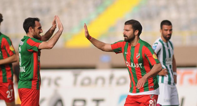 19. dakikada Karşıyaka öne geçti. Bu dakikada Battal sol kanattan korneri kullandı, Abdülhamit’in kafayla aşırttığı topu kale önünde Diarra, defansın müdahalesine rağmen ağlara yolladı: 1-0.