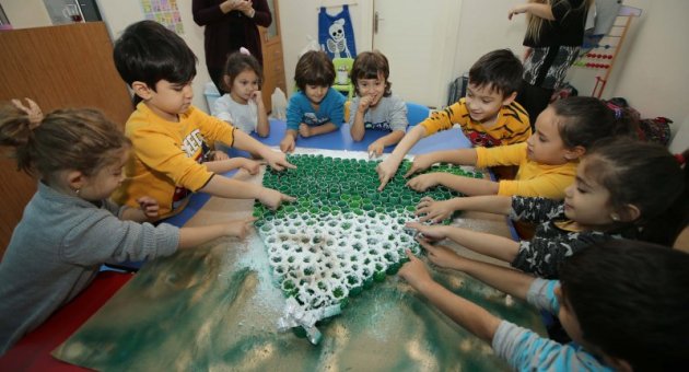 Karşıyaka Belediyesi Sosyal Yardım İşleri Müdürlüğü’ne bağlı Karşıyaka’nın Filizleri Anaokulu öğrencileri, yeni yıl heyecanlarını sergiye taşımaya hazırlanıyor. Günler öncesinden çalışmalara başlayan minikler, atık malzemeleri de kullanarak yılbaşı temasıyla renkli eserler tasarladı. Cd, pet şişe, çuval, kavanoz, hasır ip, naylon poşet, gazoz kapağı, köpük tabak, kese kağıdı, el işi kağıdı, karton, makyaj pamuğu ve çeşitli plastik malzemelerin kullanıldığı grup etkinliklerine katılan çocuklar, yaratıcılıklarını keşfetme fırsatı buldu.