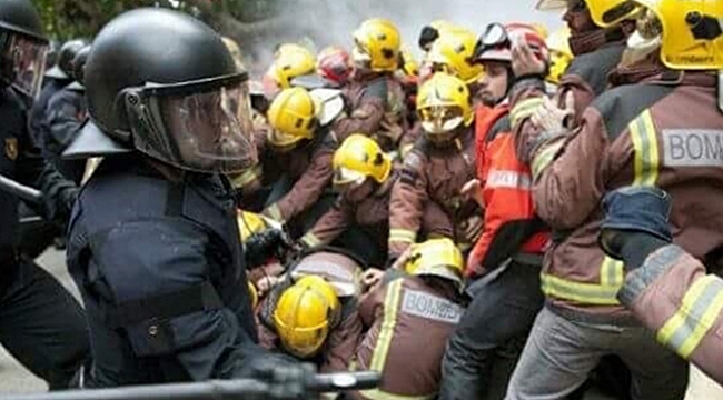 Polisin, Katalonya’nın birçok noktasında iki grup arasında kollarını havaya kaldırarak duran itfaiyecilere de şiddet uyguladığı görüldü.