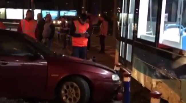 Kaza Yapan İki Araç Tramvay Durağına Çarptı