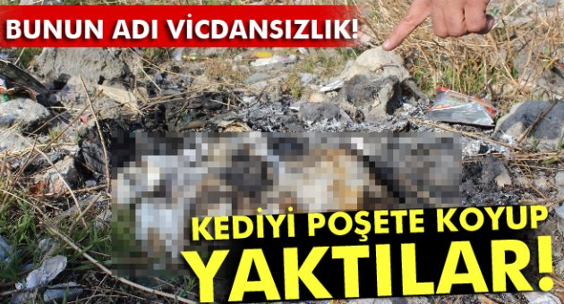 Adıyaman’da poşetle birlikte yakılarak boş araziye atılmış halde bulunan kedi görenlerin vicdanını sızlattı.