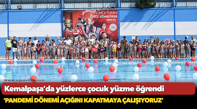 Kemalpaşa Belediyesi tarafından Armutlu, Bağyurdu ve ilçe merkezinde 14 Haziran’dan itibaren devam eden kurslarda yüzme eğitimi gören 5-11 yaş arası 827 minik kursiyer, bugün gerçekleştirilen kapanış etkinliğinde havuzları doldurdu. ‘’Kemalpaşa’da yüzme bilmeyen çocuk kalmayacak’’ projesi kapsamında 15 eğitmen tarafından, yaz ayları boyunca profesyonel eğitim gören miniklere madalyalarını, Kemalpaşa Belediye Başkanı Rıdvan Karakayalı, belediye başkan yardımcıları, spor birimi sorumluları ve eğitmenleri takdim etti. Öğrenci velileri çocuklarını büyük bir mutlulukla izlerken, gerçekleştirilen yüzme yarışlarına alkışlarla destek verdi.