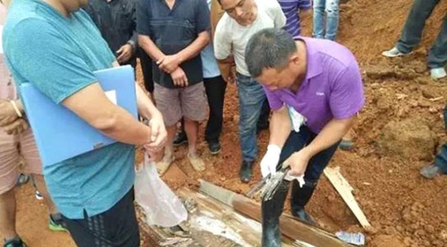 Çin'in Hunan eyaletinde bir inşaat alanında çalışanlar oldukça tuhaf bir olayla karşı karşıya kaldı. Kepçe operatörü kazdığı bir toprağın altında tabut buldu.