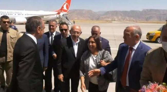 Kılıçdaroğlu'nu Şırnak Şerafettin Elçi Havalimanı’nda Erdoğan Toprak ile birlikte CHP Şanlıurfa İl Başkanı Cihangir Bilin, CHP Hakkâri İl Başkanı Nazım Demir, CHP Batman İl Başkanı Hüseyin Yaşar, CHP Mardin İl Başkanı Mehmet Kılıçarslan karşıladı.