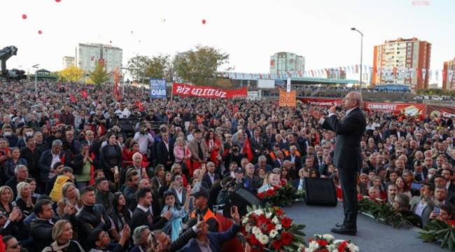 - Bizim hedefimiz, Cumhuriyet’i demokrasiyle taçlandırmaktır. Bunu yaptığımız takdirde, bir 20 yıldır yapılamayan öğrenci yurdu sorununu bir yılda çözeceğiz. Üreten, alın teri döken herkesin hakkını, hukukunu teslim edeceğiz. Üretiyorsanız, alın teri üretiyorsanız emeğinizin karşılığını alacaksınız. İster taksi şoförü ol ister çiftçi ol, esnaf ol, sanayici ol, kamuda görevli bir memur ol, ne olursan ol, alın teri döküyor ve üretiyorsan, çalışıyorsan hakkın teslim edilecektir. Bugün yapılan; üretenin cezalandırıldığı, havadan geçinenlerin ise mükafatlandırıldığı bir dönemdeyiz. Bunun farkındayız, bu tabloyu tersine çevireceğiz. Güzel tabloda; emek, alın teri, gözyaşı var. Gözyaşı derken sevinç göz yaşları olacak. Kucaklaşacağız, barışacağız, helalleşeceğiz, kamplaşmayacağız. Doğusu, batısı, güneyi, kuzeyi, Türkiye bir bütün olacak ve hep birlikte Türkiye’yi ayağa kaldıracağız.