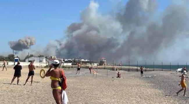 Rusya'ya bağlı Kırım'ın tatil beldelerinden Novofedorivka'da bir dizi patlama gerçekleşti. Kasabanın üzerini büyük duman bulutları kaplarken patlamalar plajlardan görüldü.