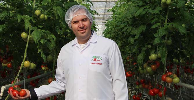 Genel kanının aksine serada yapılan üretimin daha sağlıklı olduğunu vurgulayan Smyrna Seracılık Pazarlama Müdürü Osman Göksan, “Ben serada yapılan üretimin tarlada yapılan üretime göre daha sağlıklı olduğuna kesinlikle imzamı atarım. Ürettiğimiz domatesleri çocuklarınıza güvenle yedirebilirsiniz. Çünkü biz bu üretimi bilinçli yapıyoruz. Yazın tarlasında üretim yapan çiftçi çıkar gözeten danışmanların yanlış yönlendirmesiyle bilinçsizce ilaç kullanabiliyor. Oysa biz seramızda kesinlikle akrilik tarım ilacı kullanmıyoruz” dedi. Ürün verimliliğini ve kalitesini düşüren zararlı böceklerle biyolojik yöntemlerle mücadele ettiklerinin altını çizen Göksan, “Zararlı böceklerle mücadelemizi ilaçla değil doğanın kendi doğal döngüsünü kullanarak yapıyoruz. Kırmızı örümcek, beyaz sinek ve tuta gibi zararlılarla mücadele için Hollanda menşeli bir firmadan bu zararlılarla beslenen böceklerin yumurtalarını alıyoruz. Bu yumurtaları seramıza yerleştiriyoruz. Uygun şartlar oluştuğunda yumurtadan çıkan bu böcekler ürüne zarar veren böceklerle beslenmeye ve onları yok etmeye başlıyor. Bu döngü tamamen doğanın özüne uygun doğal bir döngü oluyor. Yaptığımız bu biyolojik mücadele sayesinde de seramızda ilaç kullanma ihtiyacı duymuyoruz” diye konuştu.