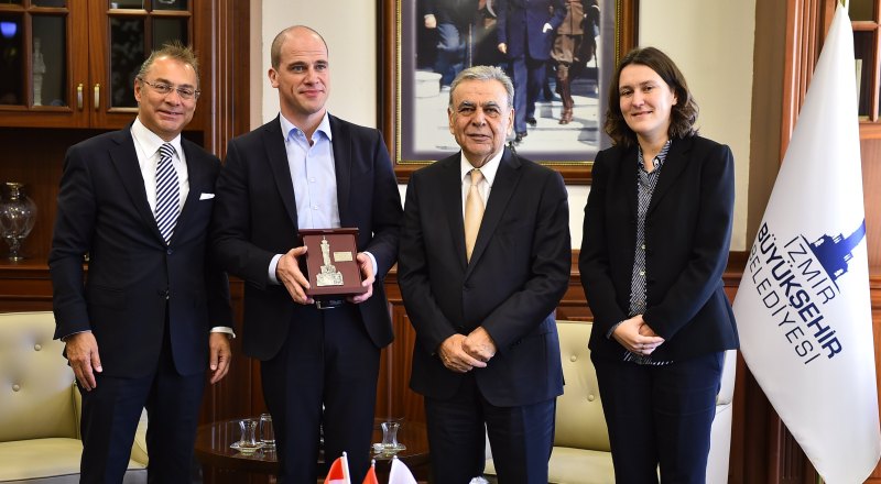 Hollanda Koalisyon Hükümeti ortağı Sosyal Demokrat İşçi Partisi’nin (PvdA) Lideri Diederik Samsom ile Avrupa Parlamentosu Türkiye Raportörü ve Hollanda Temsilciler Meclisi Üyesi Kati Piri, göç konuları ve Türkiye’nin karşı karşıya olduğu sınırlamalar hakkında görüş alışverişinde bulunmak üzere İzmir Büyükşehir Belediye Başkanı Aziz Kocaoğlu’nu ziyaret etti. Başkan Kocaoğlu’nun makamında ağırladığı heyette Ankara Hollanda Büyükelçiliği Başkatibi Erik van Oudheusden ile Hollanda İzmir Fahri Konsolosu Oğuz Özkardeş de yer aldı. Avrupa Birliği ile yapılan anlaşma sonrası önümüzdeki süreç için Büyükşehir Belediye Başkan Aziz Kocaoğlu’nun öngörüsünü soran Samsom, “Bu probleme birlikte çözüm bulmak durumundayız” dedi.