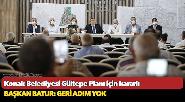 Şehir Plancıları Odası’nın açtığı dava sonucu 4. İdare Mahkemesi’nde Gültepe Planının iptaline ilişkin karar sonrası Konak Belediye Başkanı Abdül Batur, planın yeniden yapılacağını ve geri adım atmayacaklarını söyledi. 4. İdare Mahkemesi’nin 1/25.000’lik üst ölçekli plan, 1/5.000 nazım imar planı ve 1/1.000 uygulama imar planı arasındaki uyumsuzluğu gerekçe göstererek tamamen teknik nedenle planın iptal ettiğini söyleyen Başkan Abdül Batur, en kısa sürede gerekli teknik değişikliklerinin yapılacağını ve iptal nedeninin ortadan kaldırılarak örnek bir plan hazırlanacağını belirtti. Mahkeme kararında yapılan planın şehircilik ilkelerine, planlama esaslarına ve imar mevzuatına aykırı olmadığının belirtildiğine dikkat çeken Başkan Batur, “Bu dava zaman kaybından başka bir şeye yaramadı. Olan Gültepe’de 50 yıldır modern kent hayatı özlemiyle yaşayan vatandaşlarımıza oldu. Onların zamanı çalındı. Ama bizde geri adım olmayacak. Mahkeme kararına saygılıyız. O kararda ne eksik varsa düzelecek. En kısa sürede bu teknik aksaklığı giderip yeniden planı meclislerimizden geçireceğiz” diye konuştu.