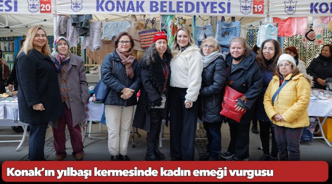 Konak Belediyesi’nin Alsancak Dominik Caddesi’nde düzenlediği, belediye semt merkezleri kursiyerleri ile başvuru yapan Konaklı kadınların el emeği ürünlerinin hediyelik olarak sergilendiği Yılbaşı Kermesi yoğun ilgi gördü. Sevdiklerine yılbaşı hediyesi almak isteyen İzmirlilerin akın ettiği kermese, hediyelik eşya stantlarının yanı sıra konser ve halk dansları gösterisi de neşe kattı. Konak Belediye Başkanı Nilüfer Çınarlı Mutlu da kermes stantlarını tek tek gezerek üretici kadınlara destek oldu; kermeste sahne alan Konak Kültür Orkestrası’nın konserini dinlemeye gelenlerle birlikte şarkı söyledi, dans etti.