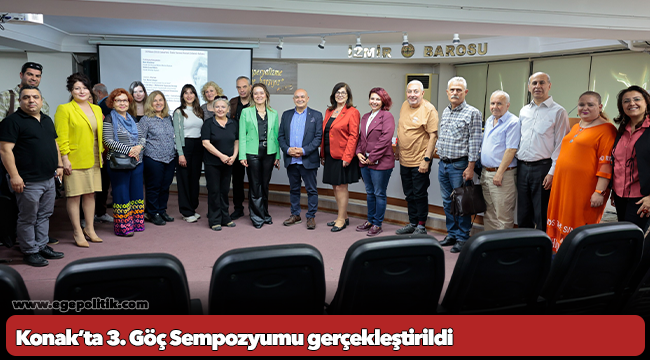 Konak Belediyesi, Mülkiyeliler Birliği İzmir Şubesi, Konak Kent Konseyi ve İzmir Kadın Kuruluşları Birliği iş birliğiyle bu yıl üçüncüsü düzenlenen Nermin Abadan Unat Göç Sempozyumu İzmir Barosu Nevzat Erdemir Salonu’nda gerçekleşti. “Göç ve Çalışma Yaşamı” temasıyla düzenlenen sempozyumun açılış konuşmalarını Konak Belediye Başkanı Nilüfer Çınarlı Mutlu’yla birlikte Konak Kent Konseyi Mülteci Meclisi Başkanı Mete Hüsünbeyi yaptı.
