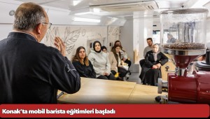 Konak Belediyesi’nin İzmir Büyükşehir Belediyesi Meslek Fabrikası iş birliğinde düzenlediği Temel Barista Kursu başladı. Toros Sosyal Tesisleri önünde, barista eğitimi için özel tasarlanmış mobil araç içinde gerçekleştirilen eğitime, başvurusu kabul edilen 12 genç kursiyer katıldı. Meslek Fabrikası eğitmenlerinden Ercan Turan’ın verdiği eğitim kapsamında barista adayları, kahvenin tarihçesinden dünyaya yayılış öyküsüne, çekirdeğin niteliğinden içecek haline gelmesine, ürün içeriğinden servis ve sunumuna kadar pek çok bilgiyi barındıran detaylı bir programa katılma şansı yakaladı. Tamamen ücretsiz olarak verilen kursta Turan, mobil araçta hazırlanan ekipmanı kullanarak baristalık mesleğinin inceliklerini uygulamalı olarak anlattı.