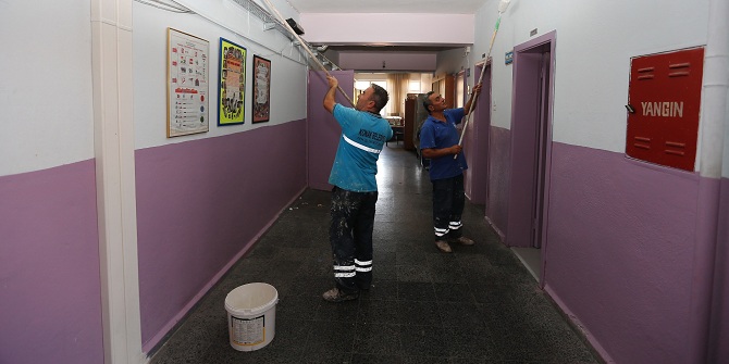 Konak Belediyesi’nce yürütülen bakım ve onarım çalışmaları kapsamında okulların sınıf ve koridorları boyandı, tuvaletleri baştan aşağı yenilendi, eskiyen zemin döşemeleri yenileriyle değiştirildi. Ekiplerin yoğun emek harcadığı çalışmalar sadece bina içleriyle sınırlı kalmadı. Okulların eskimiş dış cephe boyaları yenilenirken, korkuluk demirleri de elden geçirildi. İhtiyaç duyan okullara da basketbol potaları ve mini futbol kaleleri dikildi. Çalışmalar sonunda okullar yeni eğitim yılı öncesi pırıl pırıl oldu.
