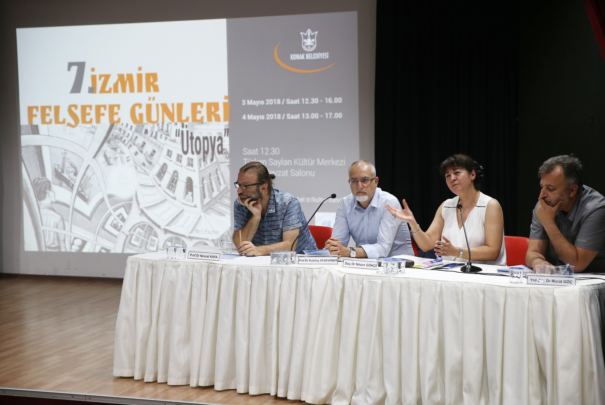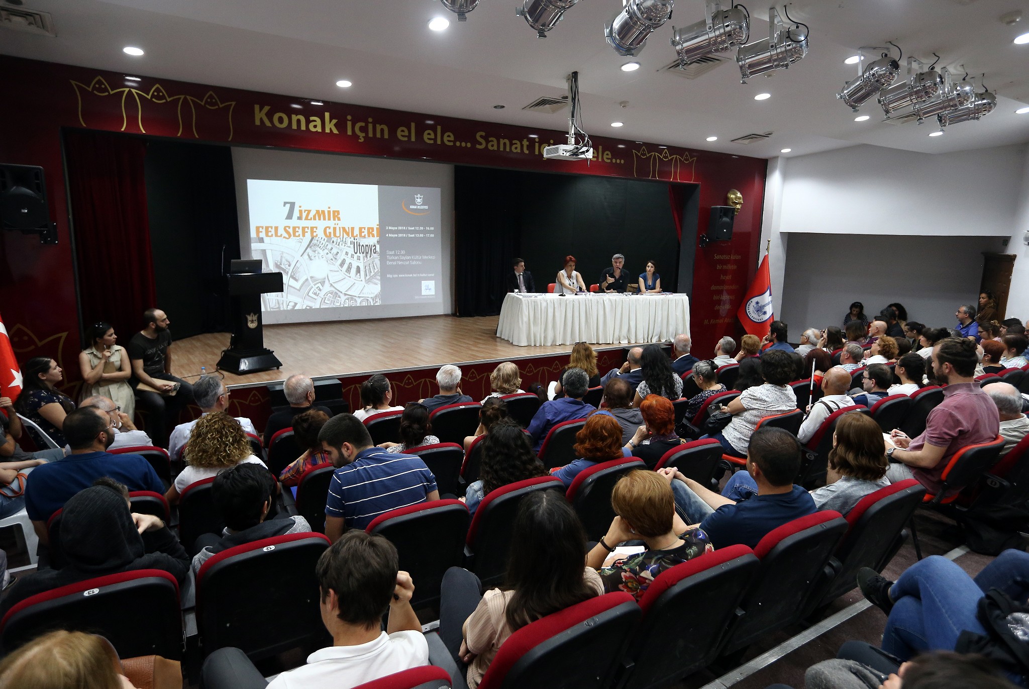 Konak Belediyesi’nin ev sahipliğinde bu yıl 7’incisi düzenlenen İzmir Felsefe Günleri yoğun ilgi gördü. 3-4 Mayıs tarihleri arasında Konak Belediyesi’nin Alsancak Türkan Saylan Kültür Merkezi Benal Nevzat Salonu’nda gerçekleştirilen etkinlikler yoğun katılıma sahne oldu. Dokuz Eylül Üniversitesi Felsefe Bölümü’nün de destek verdiği ve bu yıl ‘Ütopya’ konu başlığı altında gerçekleştirilen etkinliğin açılışına Konak Belediye Başkanı Sema Pekdaş, Dokuz Eylül Üniversitesi Rektörü (DEÜ) Edebiyat Fakültesi Dekan Yrd. Doç. Dr. Selma Gülsevin, DEÜ Edebiyat Fakültesi Felsefe Bölümü Başkanı Prof. Dr. Levent Aysever ile çok sayıda davetli katıldı.