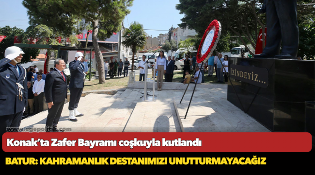 Törende konuşma yapan Konak Belediye Başkanı Abdül Batur, Türkiye için çok önemli bir zaferin tarihi olan 30 Ağustos’u her yıl coşku içinde kutlamaya devam edeceklerini ve unutturmayacaklarını dile getirdi. Başkan Batur, sözlerine şöyle devam etti:
