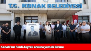 Konak Belediyesi, geçirdiği elim kaza sonucu tedavi gördüğü hastanede hayatını kaybeden Manisa Büyükşehir Belediye Başkanı Ferdi Zeyrek anısına Basmane’deki Ana Hizmet Binası önünde ücretsiz yemek ikramında bulundu. Zeyrek’in vefatının 7. günü dolayısıyla düzenlenen yemek hayrına Konak Belediye Başkanı Nilüfer Çınarlı Mutlu’nun yanı sıra CHP Konak İlçe Başkanı Ozan Ali İlgazi, CHP İl ve İlçe Yöneticileri, Konak Belediye Meclis Üyeleri, sivil toplum kuruluşlarının temsilcileri, partililer, muhtarlar ve çok sayıda vatandaş katıldı. Başkan Mutlu ve İlgazi tarafından ikram edilen yemekleri alırken Ferdi Zeyrek’e dualar eden vatandaşlar, onun vefatından dolayı duydukları derin üzüntüyü ve kendisine olan sevgilerini dile getirdiler. Öte yandan Konak Belediyesi tarafından ikramın yapıldığı alana Ferdi Zeyrek’in fotoğrafının yer aldığı ‘Unutmayacağız’ yazılı dövizler konuldu.