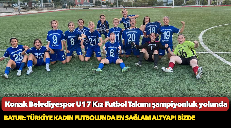 2022-2023 sezonu U17 Kızlar Türkiye Şampiyonası’nda İzmir’deki grup maçlarını namağlup tamamlayan Konak Belediyespor U17 Kız Futbol Takımı, İzmir Şampiyonu oldu. Gruplardan lider çıkan mavi beyazlılar ilk olarak Denizli’de oynanan maçta Antalya Şampiyonu Konyaaltı Belediyespor’u 2-1’lik skorla yenerek şampiyonada ilk 16’ya kalmayı başardı. Ardından Tekirdağspor’la karşılaşan Konak Belediyespor bu maçtan aldığı 9-0’lık galibiyet sonrası çıktığı çeyrek finalde Denizli Sultanlarspor’u 2-0 mağlup ederek yarı finale yükseldi. Şampiyonluğa odaklanan mavi beyazlı ekip, 4 Eylül’de Ankara Altındağ Sahasında Kayseri Kadın FK ile yarı final karşılaşmasında top koşturacak. U17 Kızlar Türkiye Şampiyonası’nda yarı final ve final karşılaşmaları da tarafsız sahada tek maç formatında yapılacak. Finalde galip gelen takım U17 Kızlar Türkiye Şampiyonası kupasını şehrine taşıyacak.