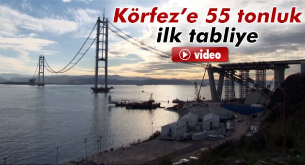 İstanbul ile İzmir arasındaki ulaşım süresini 3 saate düşürecek olan Gebze-Orhangazi-İzmir Otoyolu’nun en önemli parçası olan Körfez Geçiş Köprüsü’nde tabliyeler yerleştirilmeye başladı. İzmit Körfezi geçişini 1 buçuk saatten 6 dakikaya indirecek olan Körfez Geçiş Köprüsü’nde toplam 113 tabliye yerleştirilecek. Köprüye yerleştirilecek dev tabliyelerden deniz üstünde duracak olan ilk tabliye bugün yerleştirildi.