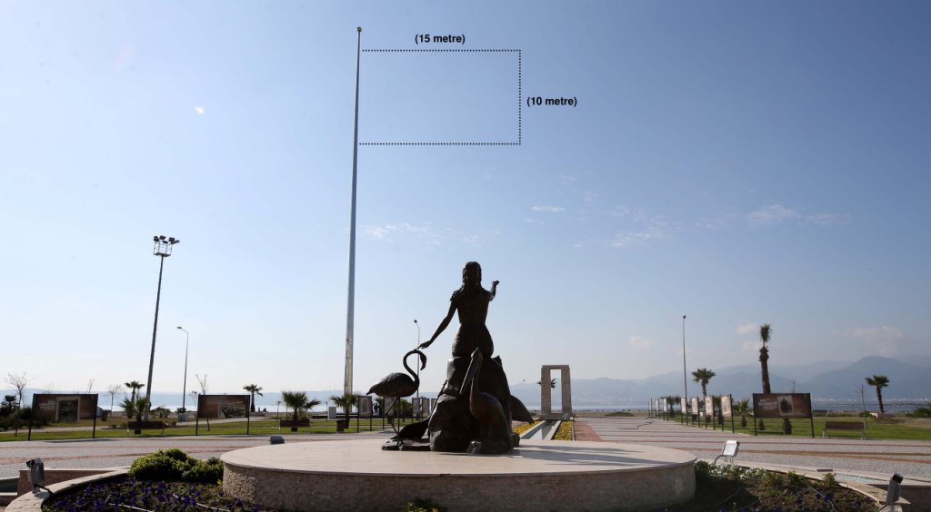 Yaşanan bombalı saldırılar üzerine tüm organizasyonları iptal eden Karşıyaka Belediyesi, son dönemdeki terör olaylarını protesto etmek ve Çanakkale Zaferi’nin 101. yıl dönümünü kutlamak için anlamlı bir etkinliğe imza atacak. Mavişehir’deki Denizkızı Parkı’nın içine; kromaj kaplı çelik konstrüksiyondan yapılan 50 metrelik gönder direği çeken belediye, İzmir Körfezi’nin en büyük bayrağını burada dalgalandıracak. 150 metrekare büyüklüğünde olan Türk Bayrağı, Körfez’in her noktasından görülebilecek. Dev bayrağın göndere çekilme töreni, Çanakkale Savaşları’nın yıl dönümü olan 18 Mart Cuma günü saat 18.00’de gerçekleşecek. Mavişehir’deki Denizkent restoranın ön kısmında yer alan Denizkızı Parkı’ndaki etkinlikte canlı heykeller de gösteri sunacak. Bayrağın taban alanı, traverten kaplı led ve 4 adet projektör ile aydınlatılacak. Karşıyaka Belediyesi, geçen yıl da Çanakkale Anıtı’nın prototipini aynı parkın içine dikmiş, Çanakkale ruhunu Karşıyaka’ya taşımıştı.