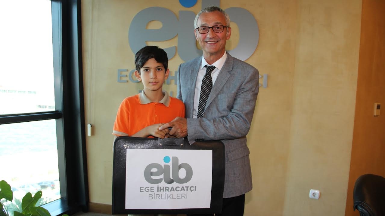 236 eserin yarıştığı yarışmada birinci olan Ege İhracatçı Birlikleri Orta Okulu Öğrencisi Adil Selim Kapucu’ya yarışma sonrasında ilk ödülü; Ege İhracatçı Birlikleri Koordinatör Başkanı Sabri Ünlütürk verdi.