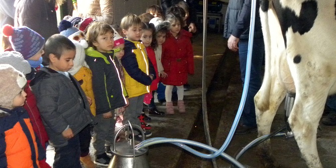“Suflörsüz” eğitimi ile “Burada her şey küçüğün” ilkesiyle dikkatleri üzerine çeken Bornova Küçük Şeyler Anaokulu’nun öğrencileri, “Süt Projesi” bağlamında Ege Üniversitesi Ziraat Fakültesi Hayvan Çiftliği’ni gezerek süt konusunda bilgi ve görgülerine geliştirdiler. Kendilerine göre devasa süt ineklerini yakından gördüler, safkan süt keçilerini sevme fırsatı elde ettiler… Çocukların en çok ilgisini süt sağım işlemi çekti!..