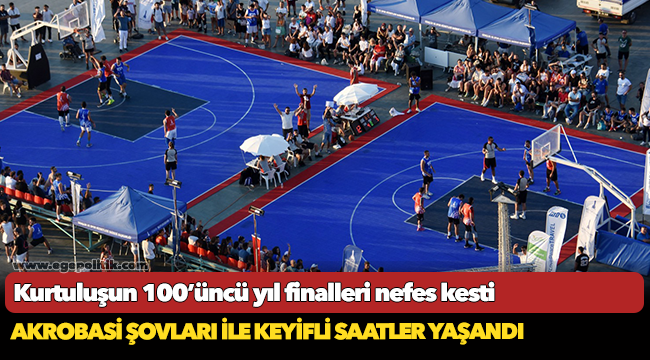 İzmir'in kurtuluşunun 100’üncü yılı onuruna İzmir Büyükşehir Belediyesi tarafından düzenlenen 3x3 Streetball İzmir 100.Yıl Kupası'nın finalleri çekişmeli maçlara sahne oldu. Cumhuriyet Meydanı'nda yapılan finallere İzmirli sporseverler büyük ilgi gösterdi. Üç sayı ve smaç yarışması, dans gösterisi, trambolin ve akrobasi şovları ile keyifli saatler yaşandı.