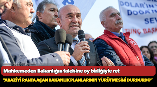 İzmir Bölge İdare Mahkemesi Üçüncü İdari Dava Dairesi, İzmir Büyükşehir Belediyesi’nin rezerv yapı alanı olarak belirlenen alan için açtığı yürütmenin durdurulması istemi hakkında verilen karara itiraz eden Çevre ve Şehircilik Bakanlığı’nın talebini reddetti. Mahkemece yürütmenin durdurulması istemi hakkında verilen kararda yasaya aykırılık bulunmadığı belirtildi. Bakanlığın itirazının reddine kesin olarak oy birliğiyle karar verildi.
