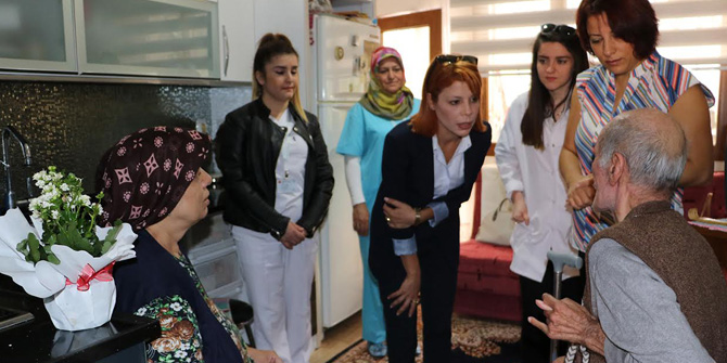 Manisa Büyükşehir Belediyesi’nin 65 yaş üzerindeki yardıma ihtiyacı olan vatandaşların yaşam kalitesini yükseltmek amacıyla yürüttüğü ‘Evde Bakım Hizmeti’ vatandaşların yüzünü güldürüyor. Hemşire, diyetisyen ve psikologdan oluşan ‘Evde Bakım Birimi’ çalışanları, vatandaşların “hayır duaları” ile evlerden ayrılıyor. Bu kapsamda 1 Ekim Dünya Yaşlılar Günü’nde de, vatandaşları yalnız bırakmayan Büyükşehir Belediyesi Sağlık İşleri Dairesi Başkanı Gözde Koç, İş Sağlığı ve Güvenliği Şube Müdürü Fulden Özdemir ve Evde Bakım Birimi personelleriyle ihtiyaç sahibi yaşlıları ziyarette bulunarak sorunlarını dinledi.