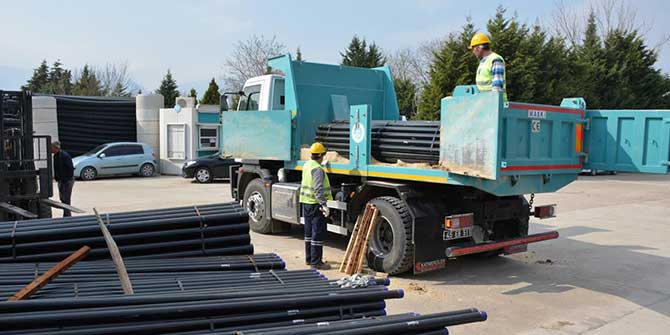 Manisa Büyükşehir Belediyesi Manisa Su ve Kanalizasyon İdaresi Genel Müdürlüğü, ihtiyaç duyulan noktalarda kullanılması için elindeki malzemeleri yedekliyor. Bu kapsamda, Elektrik Makine ve Malzeme İkmal Dairesi Başkanlığı’nın geçtiğimiz ay kesintisiz su için bünyesine kattığı 20 kilometre kolon borusu ve 700 adet dalgıç tipi elektrik motorları ilçelere dağıtılmaya başlandı. İçme suyu sondajlarında kullanılacak olan borular ilk etapta Alaşehir, Sarıgöl, Kula, Selendi, Salihli, Köprübaşı ve Demirci’ye teslim edildi.