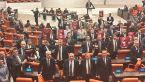 TBMM Genel Kurulu'nda “Yılgınlık yok, mücadeleye devam. Kurtuluş yok tek başına, ya hep beraber ya hiç birimiz” yazan pankartlar kaldırdı.