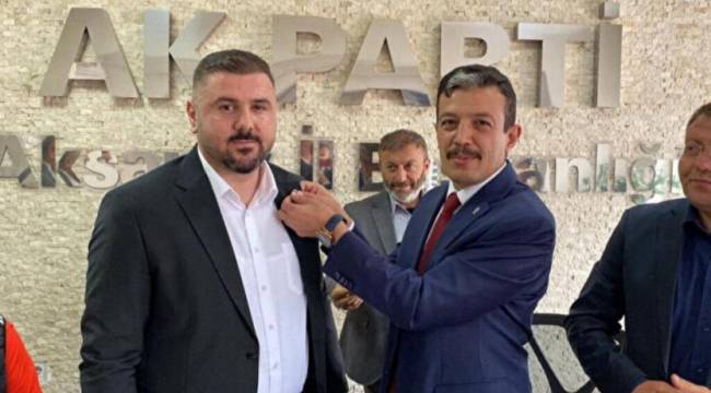 AKP Aksaray İl Başkanlığını ziyaret eden Künt ve beraberindekilere rozet takıldı.
