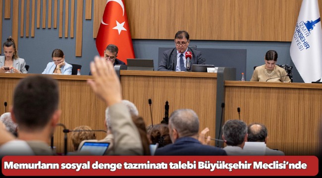 İzmir Büyükşehir Belediyesi temmuz ayı meclis toplantısının ilk oturumu İzmir Büyükşehir Belediye Başkanı Dr. Cemil Tugay yönetiminde toplandı. Mecliste başkanlık makamından gelen ek önergeler arasında İzmir Büyükşehir Belediyesi’nde görev yapan memurların sosyal denge tazminatında yasal sınır yetkisine ilişkin madde gündeme geldi. Başkanlık makamı, Tüm Bel-Sen’e bağlı kamu çalışanlarını ilgilendiren yasal sınır üstündeki sosyal denge tazminatı için “meclis kararı alınması” maddesini meclisin görüşüne sundu.