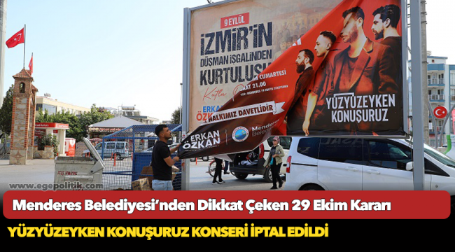 Yaşanan durum sonrası Menderes Belediyesi tarafından alınan karar neticesinde 28 Ekim günü gerçekleşecek etkinlikler kapsamında Yüzyüzeyken Konuşuruz Grubu yerine ilk olarak Ersin şov sahne alacak ardından Cumhuriyet coşkusu Ece Seçkin konseri ile taçlanacak. Konuyla ilgili belediyeden yapılan açıklama ise şöyle;