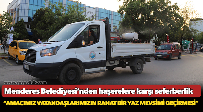 “İlaçlama ekibimiz yaz ayları gelmeden önce sinek ve haşere oluşumunun önüne geçebilmek adına erken dönemde larva ilaçlama çalışmalarına başladı. Şimdi ise haftanın her günü oluşturduğumuz program kapsamında Menderes’imizin 44 mahallesinde ilaçlama çalışmalarını sürdürüyor. Amacımız vatandaşlarımızın rahat bir yaz mevsimi geçirmesi ve bu kapsamda Menderes Belediyesi olarak çalışmalarımız sezon boyunca devam edecek.”