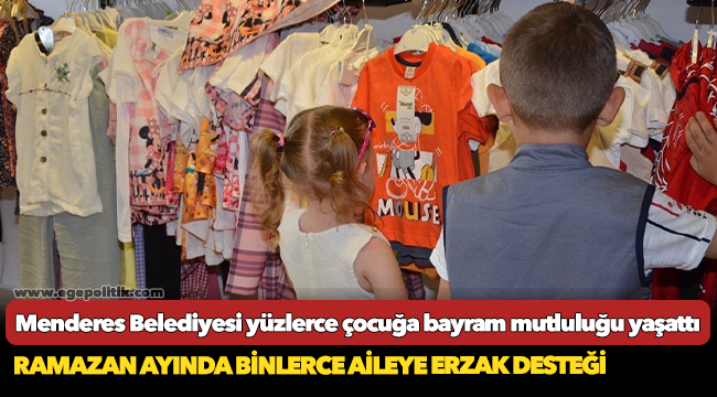 Menderes Belediyesi sosyal belediyecilik anlayışıyla çalışmalarına devam ediyor. Bu kapsamda Kültür ve Sosyal İşler müdürlüğüne bağlı ekipler Ramazan Bayramı öncesi ihtiyaç sahibi yüzlerce ailenin talepleri doğrultusunda çocuklarına bayramlık desteğinde bulundu.