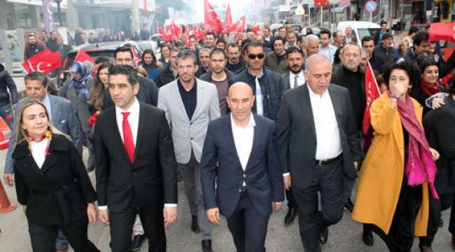 CHP'nin İzmir Büyükşehir Belediye Başkan adayı Tunç Soyer, Menderes'te gönülleri fethetti. İstanbul Milletvekili Gürsel Tekin ile birlikte geldiği Menderes'te, Belediye Başkan adayı Mustafa Kayalar'a destek veren Soyer, binlerce Menderesli vatandaşın katıldığı miting havasındaki buluşmada, "Seferihisar'ı, kısıtlı imkanlarıyla nasıl marka şehir yaptıysam, daha çok değere sahip Menderes'i de marka şehir yapacağım. Mustafa kardeşimle (Kayalar) ile birlikte Menderes'i daha üretken, daha refah ve markalaşmış bir şehir haline getireceğiz" açıklamasında bulundu.