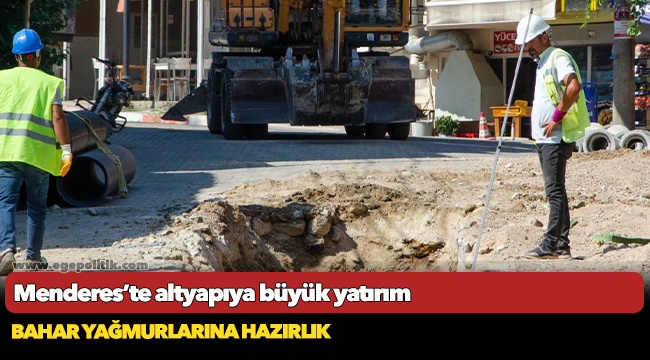 İZSU Genel Müdürlüğü başta kronikleşen sorunlar olmak üzere kentin altyapı ihtiyaçlarını karşılamak için yoğun mesai harcamaya devam ediyor. Menderes’te şiddetli yağışlarda yaşanabilecek olası afetlerin önüne geçebilmek için taşkın sularının toplanarak yağmur suyu kolektör hatlarına bağlanması ve kapalı mecraya alınarak bertaraf edilmesi için 6 bin 500 metrelik atık su ve bin 800 metrelik yağmursuyu hattı yapılıyor.