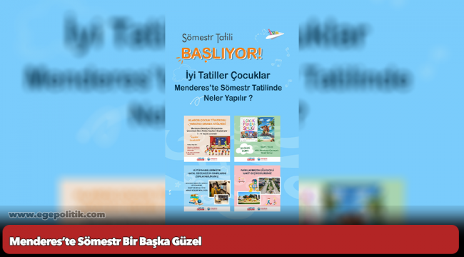 Menderes Belediyesi Kültür ve Sosyal İşler Müdürlüğü tarafından yarıyıl tatiline giren öğrenciler için çeşitli etkinler gerçekleştirilecek. 2 haftalık tatilde kültür sanat aktiviteleriyle tatil ruhu en güzel şekilde yaşatılacak.