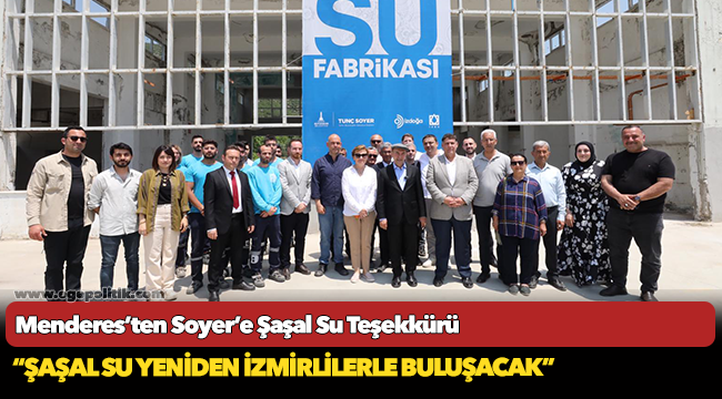 İzmir Büyükşehir Belediyesi’nin iştiraki olan İZDOĞA A.Ş. tarafından Menderes’te yer alan ve yıllarca atıl kalan Şaşal Su Fabrikası’nın yenilenerek faaliyete geçirilmesi üzerine Menderes Belediye Başkan V. Erkan Özkan, tüm Menderesliler adına İzmir Büyükşehir Belediye Başkanı Tunç Soyer’e teşekkür etti.