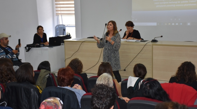 Kadın Emeği ve Kooperatifleşme Çalıştayı açılışında bir konuşma yapan Dilek Yücel Aksoy, “Kadın emeğini kadın dayanışmasını birlikte güçlenmeyi önemsiyoruz. Kadının ekonomik gücünün olması demek kimliğinin var olması demektir. Menemen’de kadınlarımız evin dışındalar ve üretiyorlar. Ancak bunun devamında ne yapmaları gerektiği konusunda onları güçlendirmek gerekiyor. Biz Menemen Belediyesi olarak kadın üretsin ve sosyal yaşama dahil olsun istiyoruz. Bu nedenle kadınlarımız için üretim atölyeleri ve çocukları için oyun odaları açıyoruz” dedi.