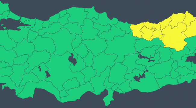 SARI KODLA UYARI YAPILAN KENTLER: Artvin, Erzurum, Giresun, Gümüşhane, Kars, Rize, Trabzon, Bayburt ve Ardahan