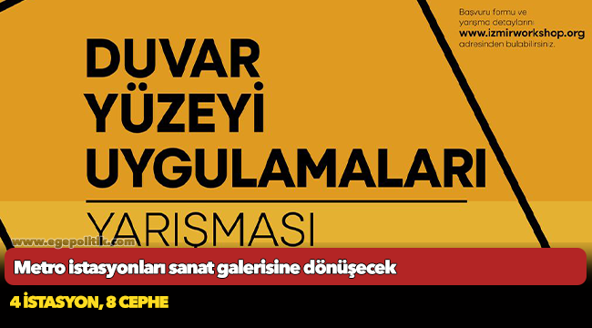 İzmir Büyükşehir Belediye Başkanı Tunç Soyer’in İzmir’i kültür sanat kentine dönüştürme hedefi doğrultusunda İzmir Büyükşehir Belediyesi, metro istasyonları için “Duvar Yüzeyi Uygulamaları Yarışması” düzenliyor. Kazanan sanatçıların eserleri Basmane, Fahrettin Altay, Konak, Çankaya istasyonlarını süsleyecek. Yarışmaya son başvuru tarihi 27 Eylül 2021 olarak belirlendi.