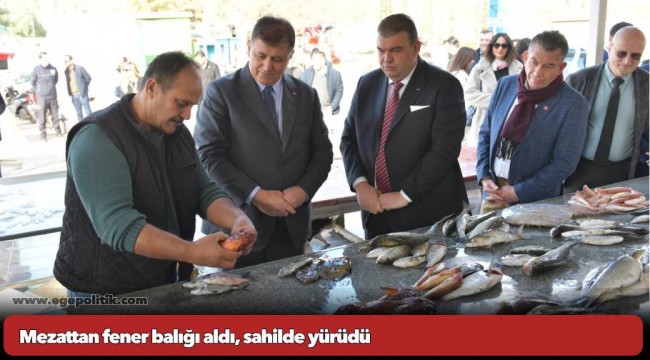 CHP İzmir Büyükşehir Belediye Başkan Adayı Dr. Cemil Tugay, seçim çalışmalarını Seferihisar’da sürdürdü. Tugay, balık mezadından açık arttırma ile kilosu 200 TL’ye fener balığı satın alırken yeniden aday gösterilen CHP Seferihisar Belediye Başkanı İsmail Yetişkin’in mezattaki pazarlığı yüzleri güldürdü.