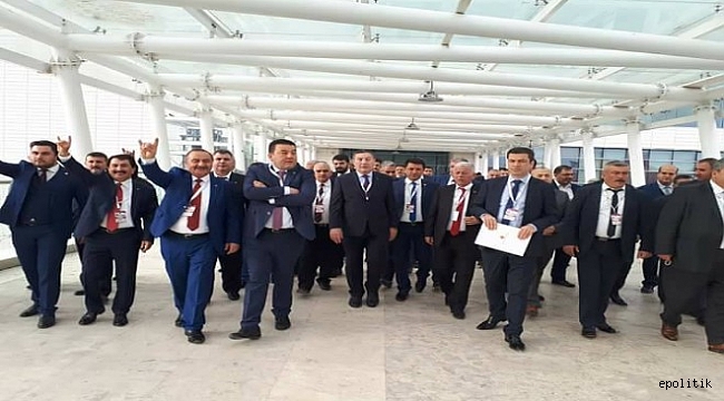 Devlet Bahçeli’nin yeniden genel başkan seçildiği kurultayda İzmir Teşkilatı da 50 otobüsle Başkent’e giderek salonda yerini aldı.