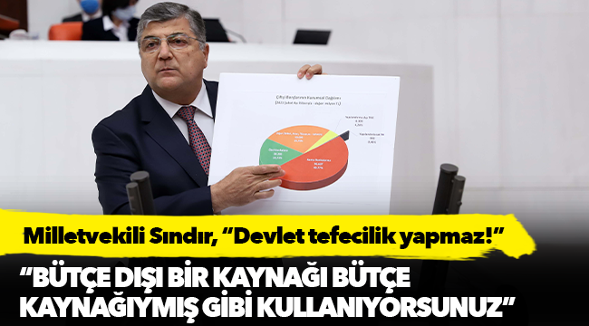 Yapılandırılacak olan borcun Tarım Kredi Kooperatiflerine olan borcun tamamıymış gibi bir algı yaratıldığını ve tefeci faizi ile borçların yapılandırıldığını ifade ederek sözlerine devam eden Sındır, “sadece takibe alınmış borçlar kapsama alınıyor. Buna çiftçi sayısı açısından baktığımızda; Çiftçi Kayıt Sistemi'ne kayıtlı 1 milyon 800 bin çiftçi varken, sadece 21 bin 086'sı yani yüzde 1,2'si bu yapılandırma kapsamına giriyor. 900 milyon lira borca uygulanacak faiz Yüzde 18. Yüzde 6'sını devlet üstlenecekmiş. Buna tefeci faizi denir. Sayın AK PARTİ Genel Başkanının grup konuşmasında ‘Önümüzdeki dönem enflasyon oranını tek haneli rakamlara düşüreceğiz’ sözü ortadayken siz yüzde 20'ye varan oranda bir tefeci faiziyle çiftçiyi borçlandırıyorsunuz ve ‘Yüzde 30'unu da bu yılın ekim ayında peşin ödeyeceksin’ diyorsunuz. Devlet, tefecilik yapmaz; vatandaşının sırtından onu açlığa, yoksulluğa, sefalete ve hatta intihara kadar sürükleyecek şekilde zenginleşme derdine düşmez, düşmemelidir” dedi.