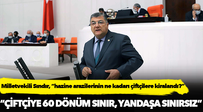Çiftçiye kiralık olarak verilecek hazine arazileri konusunda birçok soru işareti olduğunun altını çizen Sındır, “Hazine arazilerimiz, üzerinde her bir yurttaşımızın hakkı olan, milletimizin ortak mülkiyetinde olan arazilerdir. İlgili tebliğin yayımı tarihinden günümüze kadar, hangi illerde taşınmazların tarımsal üretim amacıyla kiraya verilme işlemleri yapıldığını bilmiyoruz ve bu konuda ilgili bakanlık bir açıklama yapmalı. Kiraya verilen tarım arazilerinin sayısı ve alan büyüklükleri iller bazında ne kadar ve bunlar kimlere verildi? Bu konuda şikayetler alıyoruz; hakkaniyetten, eşitlikten uzak bir yol izlemeyiniz! Kiraya verilen tarım arazilerin rayiç bedelleri ve kira bedelleri ne kadar olarak belirlendi? Her hangi bir bilgimiz yok. Kiraya verilen tarım arazilerinde, iller bazında, hangi ürünler ve kaç dönüm alan büyüklüğünde yetiştirilmekte? Özetle; bu ve buna benzer birçok konuda ilgili bakanlık açıklama yapmalı ve üreticilerimizi bilgilendirmeli” dedi.