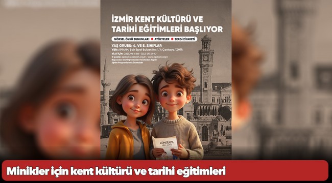 İzmir Büyükşehir Belediyesi Kent Arşivi ve Müzeler Şube Müdürlüğü, çocukların İzmir'i daha yakından tanımaları için önemli bir proje yürütüyor. Bu kapsamda Kent Kültürü ve Tarihi Eğitimleri, 5 Kasım’da 4. ve 5. sınıf öğrencilerine yönelik başlatılacak. Ahmet Piriştina Kent Arşivi ve Müzesi'nde (APİKAM) ücretsiz gerçekleştirilecek eğitimlere katılan çocuklar, İzmir konulu öyküler üzerinden hem eğlenerek yeni bilgiler öğrenecek hem de yaratıcılıklarını geliştirecek. Eğitimlerde görsel öykü sunumlarının yanı sıra atölyeler ve sergi ziyaretleri yapılacak.
