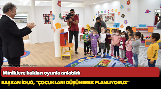 Bornova Belediyesi bünyesinde 3-6 yaş arası çocuklara hizmet veren merkezde hazırlanan özel etkinlikte çocuklar sahip olduğu hakları oyunlar oynayarak öğrendi. Doğuştan sahip oldukları haklar yazılan dövizlerle anlatıldı. 20 Kasım Dünya Çocuk Hakları Günü’nün önemine vurgu yapıldı.