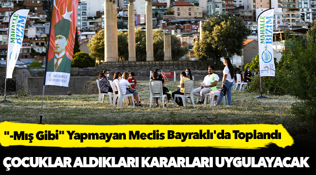 Bayraklı Belediyesi Çocuk Meclisi üyesi 126 çocuk Smyrna Bayraklı Höyüğünde bir araya geldi. Gruplar halinde düzenlenen atölyelerde eğitmenler eşliğinde eğlenceli aktivitelerle önce birbirleriyle tanışan çocuklar; aynı zamanda meclis, amaç, ortak akılla karar alma süreci gibi konular üzerine sohbet etti. Yaşadıkları yerlerdeki sorunları ve sıkıntıları dile getirerek, projelerinden bahsetti. Özellikle doğa ve çevre konularında çalışma yapmak isteyen çocuklar, atıkların ayrıştırılması, doğanın korunması, yeşil alanların artırılması gibi çalışmalar yapmak istediklerini belirtti. Etkinlik kapsamında eski Smyrna kentini de eğitmen eşliğinde gezen çocuklar, tarihi kentle ilgili bilgiler edindi. Etkinlik sonunda çocuklara içinde şapka, not defteri, anahtarlık, düdük gibi çeşitli ürünlerin yer aldığı hediye paketleri dağıtıldı.